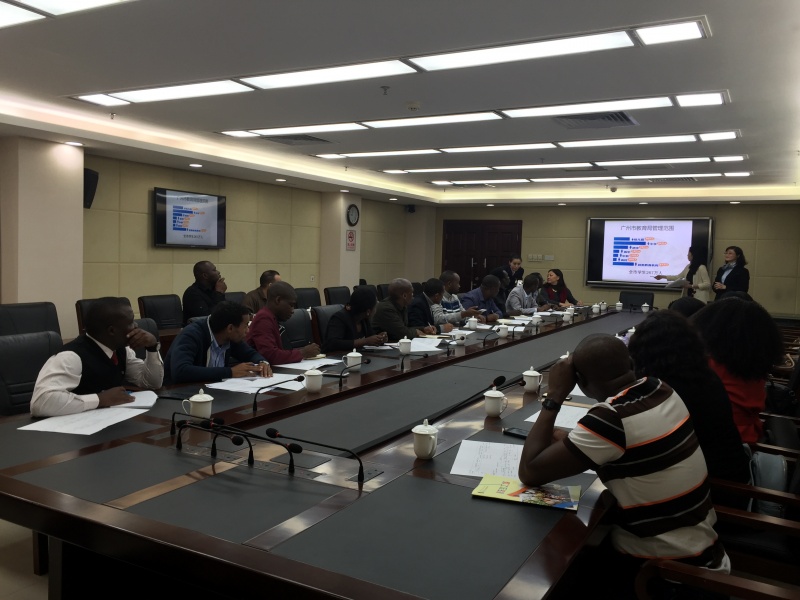 2017年1月4日上午,中山大学第六届发展中国家公共管理硕士项目(中国治理)学员(以下简称MPA-CGDC学员)在我院牛美丽教授和吴小丽老师的带领下,来到广州市教育局进行考察。广州市教育局财务基建审计处副处长陈静思女士及工作人员热情接待了我院师生一行。