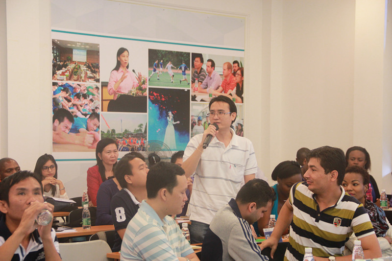 来自塞拉利昂的IMBA学生Adama Mamanie Fornah女士介绍了公共政策的重要性及内涵,并分享了塞拉利昂的国会、政府和司法部门的运作与政策制定流程。来自马拉维的MPA-CGDC学生Berlington Kenson Kamwagha先生对公共政策和公共行政进行了概念阐释,讨论了两者之间的细微差别与紧密联系,并通过马拉维的白化病防治案例解释了马拉维政府、私企、捐赠方、公共组织、消费者及利益相关群体如何相互博弈、作用来达到政策决策与管理操作的平衡。来自乌兹别克斯坦的IMBA学生Masum Hakimov先生主要介绍了乌兹别克斯坦特有的传统自治社区——马哈拉,称其是民主文明社会的良好基础,大大减少了政府管理的压力,对穆斯林国家的社会管理及公民建设具有很好的借鉴作用。来自莱索托的MPA-CGDC学生Mokhethi Jeremiah Raphuthing先生则以其祖国的艾滋病及HIV防治问题及其政府对该问题的失败政策来反思公共政策执行的阻力因素。喻锋副教授对四位学生代表的展示一一做了点评,之后全体学生针对主题进行了自由讨论,纷纷互相提问及发表意见。