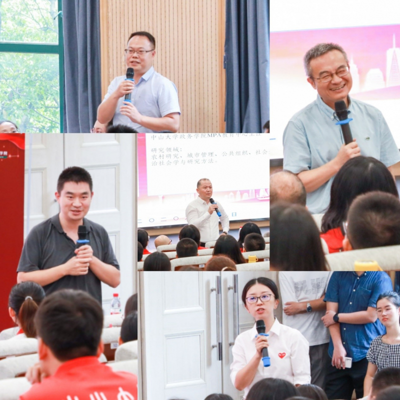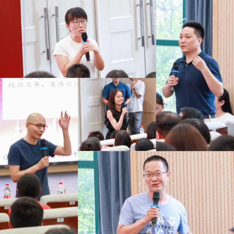 老师们与同学们交流后,MPA新生代表、MPA在校生代表、本科新生代表、本科在校生代表和博士在校生代表分别作了发言。