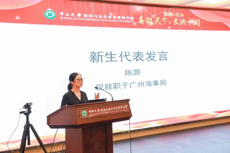 2020级MPA新生代表陈灏同学从自己走出象牙塔迈向工作岗位开始回忆,为大家讲述了自己的目标、困惑和来中山大学学习MPA的初心,号召同学们发挥好工作经验丰富的优势,立足岗位实际,做到“学而能深思、思而能有得、得而能用之”,成长为“博学 审问 慎思 明辨 笃行”的社会主义现代化建设者。