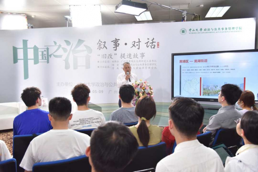 5月9日当日,学院邀请广州市黄埔区龙湖街党工委书记姚锦全走近校园,与该院师生对话交流,分享“旧改”提速中的人和事。此举旨在促进治理之学与治理实践良性互动,推动实践者与研习者双向反思,促进中国特色中国气派中国风格的国家治理之学的建构。中大政务学院相关负责人表示,项目接下来将持续邀请治理一线领导干部或产业界领导者讲述治理故事。