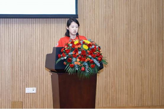 本科新生代表成文琪满怀对大学生活的憧憬与大家进行了分享。她希望能在大学阶段专注学习,深耕自我,同时积极与人合作,接纳自身的不足,将所学知识投入实践。
