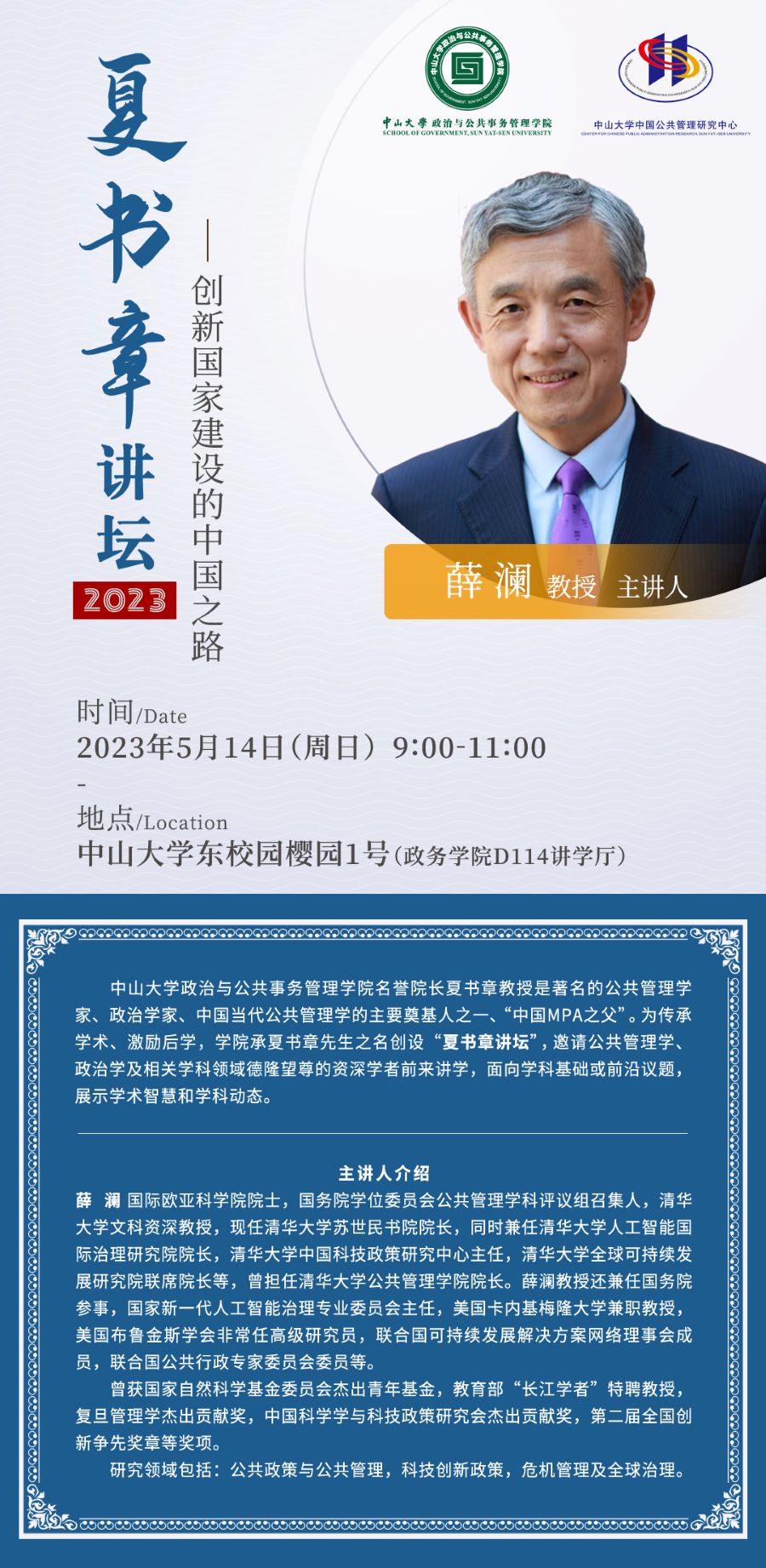 讲座预告 | 薛澜教授主讲“夏书章讲坛(2023)”