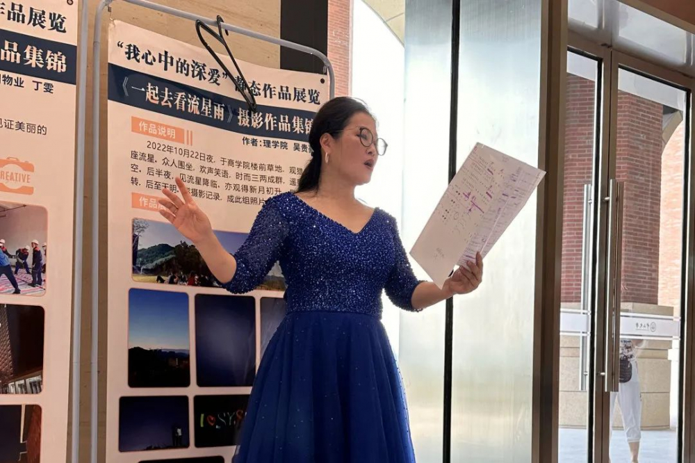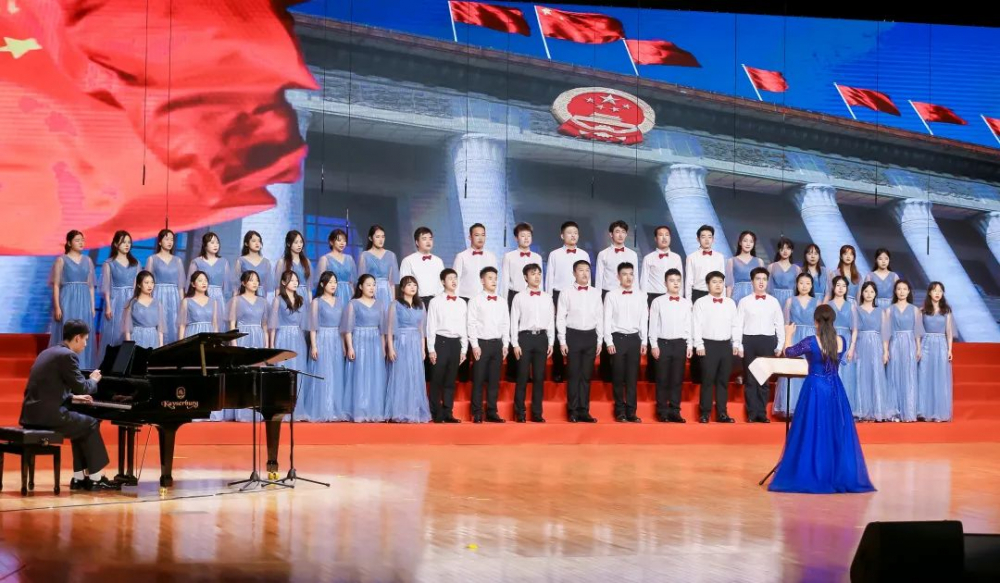 政治与公共事务管理学院合唱队的师生们用激昂的朗诵拉开帷幕,以熟练的演唱技巧和充沛的情感表达,深情演绎《不忘初心》,用歌声抒发爱党爱国情怀。队员们的声音就像一股洪流,背靠祖国的壮美河山,奔涌着把观众带入宏伟壮阔的中国大地。