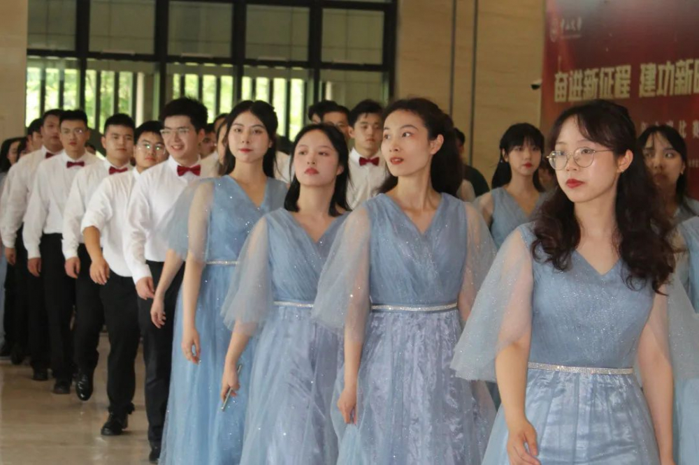 排练期间,学院党委高度重视,邀请了专业老师进行指导。师生们利用课余时间磨合表演、提升唱功,遵循专业老师的指导,练习时的歌声时而高亢、时而悠扬,令人陶醉其中。参赛者们投入了许多精力进行练习,努力掌握每一个节拍、每一个音符。在排练过程中,老师们不断寻找可优化的细节,细致编排每一处表演,参赛学生们也倍加努力,专心致志地跟着伴奏练习演唱,互相帮助、彼此鼓励。师生们既提高了合唱的水平,又拓展了很多艺术知识,得到艺术的享受