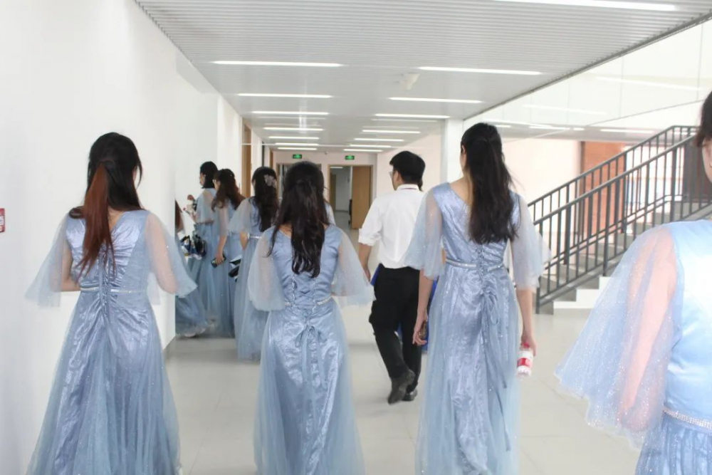 2023年5月20日上午,代表我院参赛的合唱队成员抵达中山大学深圳校区中山堂,准备登台演出。赛前,我院师生充分利用时间进行练习和预热。张曲可、罗兰、刘炜三位同学在前期积极参与到排练当中,为团队做出很大贡献,但因病遗憾未能出发现场。