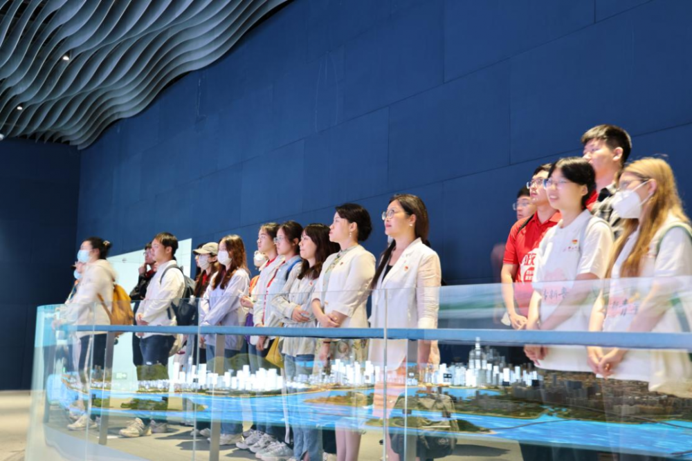 风拂南粤,潮涌珠江。在前海展示厅,社团成员于观影台上“亲历”了前海近年来翻天覆地的发展:超高层、现代化、智能化大楼拔地而起,创新型经济实验区引领全球,生态环境与人文关怀持续提升——在总书记的关怀与指导下,前海“精耕细作,精雕细琢,一年一个样,一张白纸,从零开始,画出最美最好的图画”。