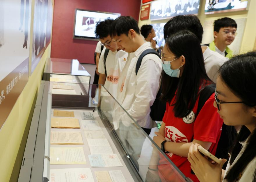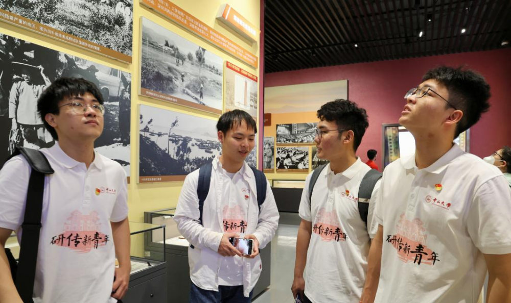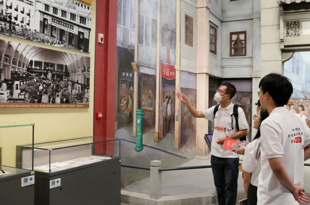 展览的第一部分为“敢为人先 勇立潮头”。党的十一届三中全会以来,面对“什么是社会主义、怎样建设社会主义”这一时代之问,有着独特人缘地缘优势和“敢为人先”文化基因的广东,主动把握历史脉搏,积极创办经济特区,成为中国改革开放的先行地和排头兵。参观过程中,师生们不时在一张张图片、一件件物品前驻足端详,认真了解展品背后的故事。