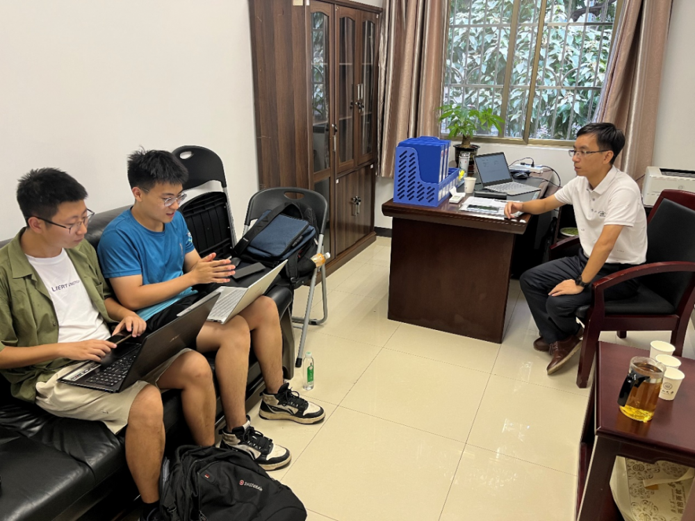 在工作队办公室,调研组同学们遇到了来自中山大学的陈英群老师和肖力老师,他们介绍了工作队的工作成绩和工作方法,分析了当地的发展前景与面临的挑战,并展望了未来的工作规划和期望。工作队一直是调研组的核心关注,调研发现,这一机制有效地实现了资源下沉目标,通过点对点帮扶减少了政策推行中的信息失真、交易成本损失;另一方面,它促进了地方政府的活力,工作队为当地人员带来方法、意识上的革新,提高了工作效率。