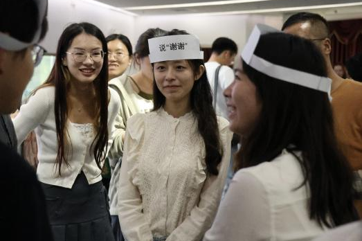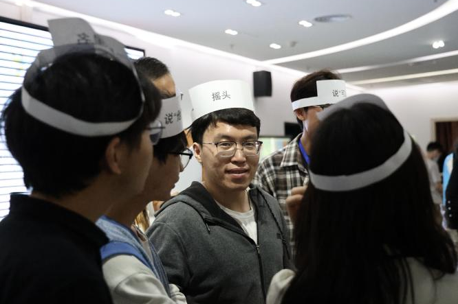 如何让来自不同学院、素不相识的同学快速“破冰”?政务学院为同学们精心设计了联谊游戏的环节。在主持人的引导下,以“逢七过”“闹钟炸弹”“口是心非”等几个简单有趣的小游戏作为开场,既把气氛烘托到位,又让队友同伴们大概了解了彼此的兴趣与喜好。而最受同学们欢迎的当属“不要做”游戏,玩家们各显神通,在一场场惊心动魄的“权谋”大戏中收获了欢笑和友谊。
