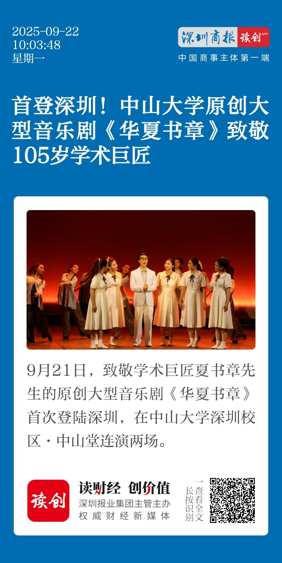 导航痕迹 首页 学院概况 媒体聚焦 首登深圳!中山大学原创大型音乐剧《华夏书章》致敬105岁学术巨匠 首登深圳!中山大学原创大型音乐剧《华夏书章》致敬105岁学术巨匠 发布人:孙全民 发布日期:2025-09-22