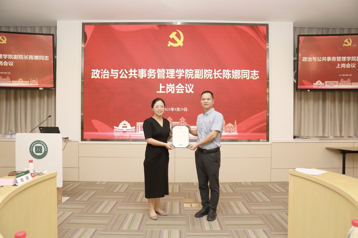陈娜同志作履新发言。她表示衷心感谢组织的信任与学院同仁的支持,并承诺将不断加强政治理论学习,在新岗位上恪尽职守,坚持维护团结,做好师生服务工作,传承学院“平等尊重、相互成就”的组织文化,严守纪律规矩,以实干实绩为学院发展贡献力量。