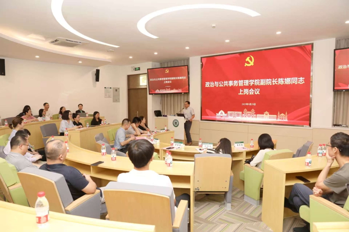 9月29日下午,政务学院在东校园学院楼D119室召开干部上岗会议。中山大学党委组织部副处级组织员卓猛同志出席会议。学院全体党政领导班子成员和教职工代表参加会议。会议由学院党委书记罗晶同志主持。