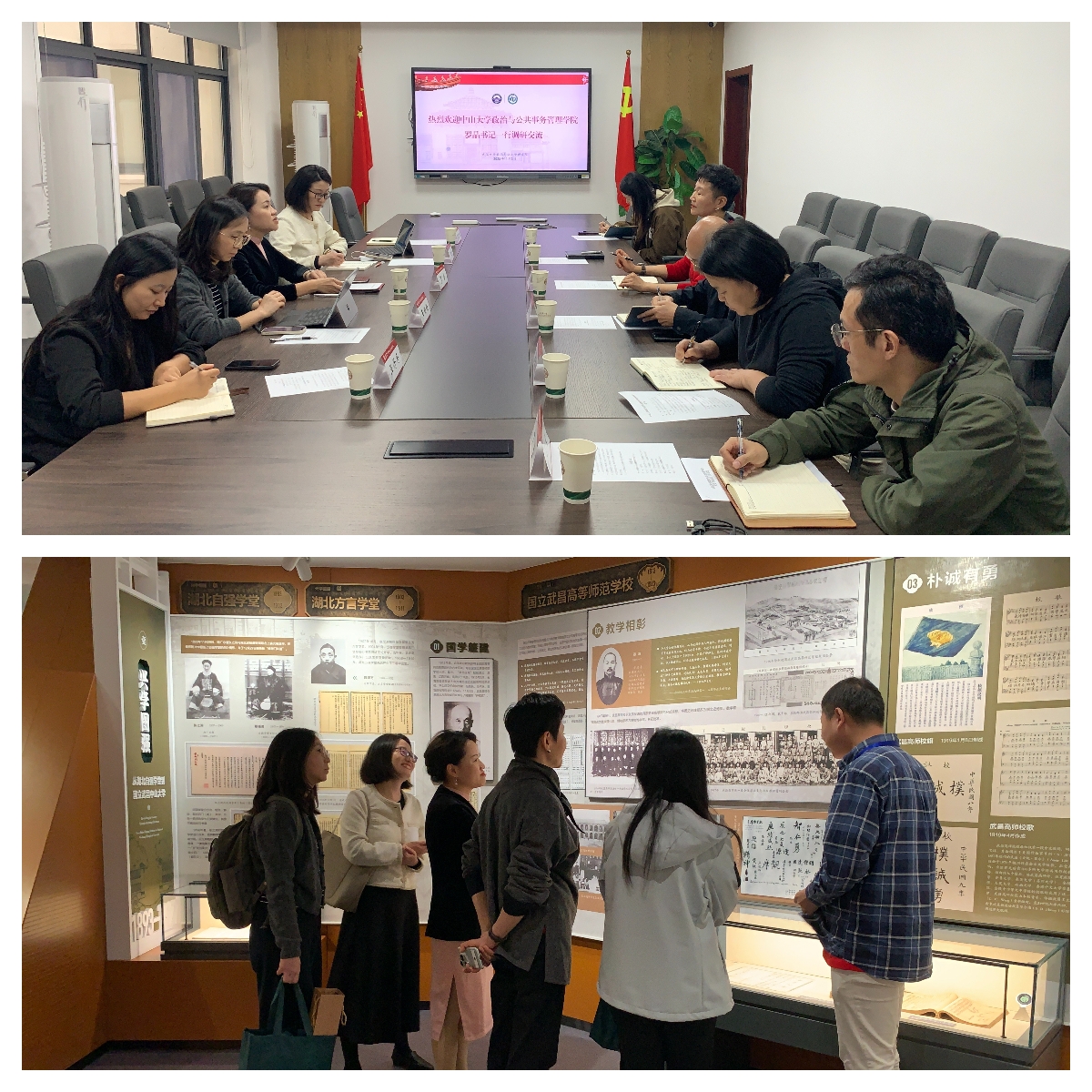 5日下午,调研组首站抵达武汉大学政治与公共管理学院,在武大政管学院党委梁涛书记等陪同下参观了武汉大学校史馆,深入了解武大百余年的发展脉络与文化底蕴。在武大政管学院,梁涛书记、刘洪波副院长等与调研组座谈交流,双方围绕党建与业务融合机制、教职工党支部建设创新、学院文化建设等主题,分享了实践经验与思考。