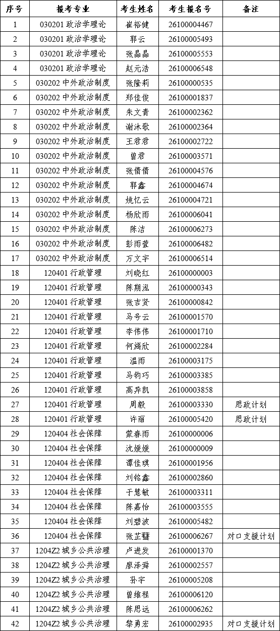 根据《中山大学政治与公共事务管理学院2026年博士研究生招生简章》等相关规定,经学院专家组审议,现对通过我院材料审核、进入综合考核的申请人名单进行公示(含思政计划)。