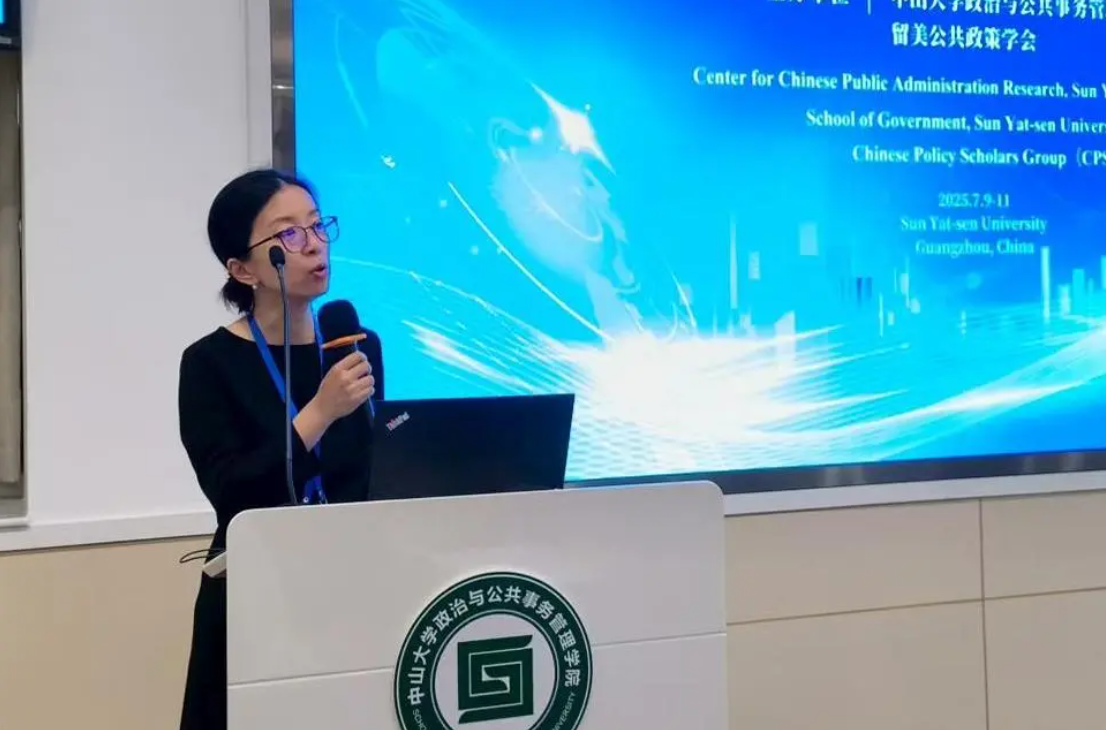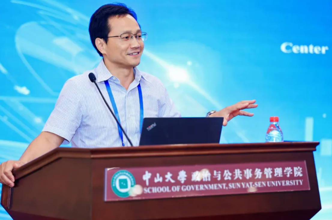 留美公共政策学会(CPSG)主席、美国乔治亚州立大学陈灿终身副教授致辞。他表示,“公共政策研究面临着挑战也孕育着机遇”,人工智能、气候危机等重大趋势正深刻地影响政策过程每一环节,“我们比以往任何时候都更需要跨学科视角、开放的学术平台去回应这些深层次的挑战。”CPSG一直致力于建立公共政策国际学术对话的桥梁,本次国际研讨会正是这种努力的一场实践,期待本次会议能更好推动中国公共政策研究在全球范围内的发声与发展。