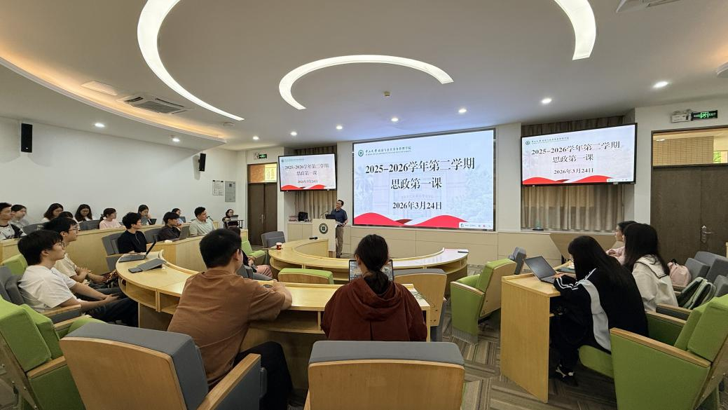 2026年3月24日,政治与公共事务管理学院新学期思政第一课在广州校区东校园政务学院D119举行。学院党委书记罗晶、院长谭安奎教授先后为2025级硕士研究生同学授课,围绕“从被动应对到主动建构”“树立正确政绩观”等主题,引导研究生深入认识时代方位与成长路径,探讨主动沟通之道与组织运作逻辑,从多维视角理解“正确政绩观”,将理性精神与担当作为融入学术研究与实践行动。